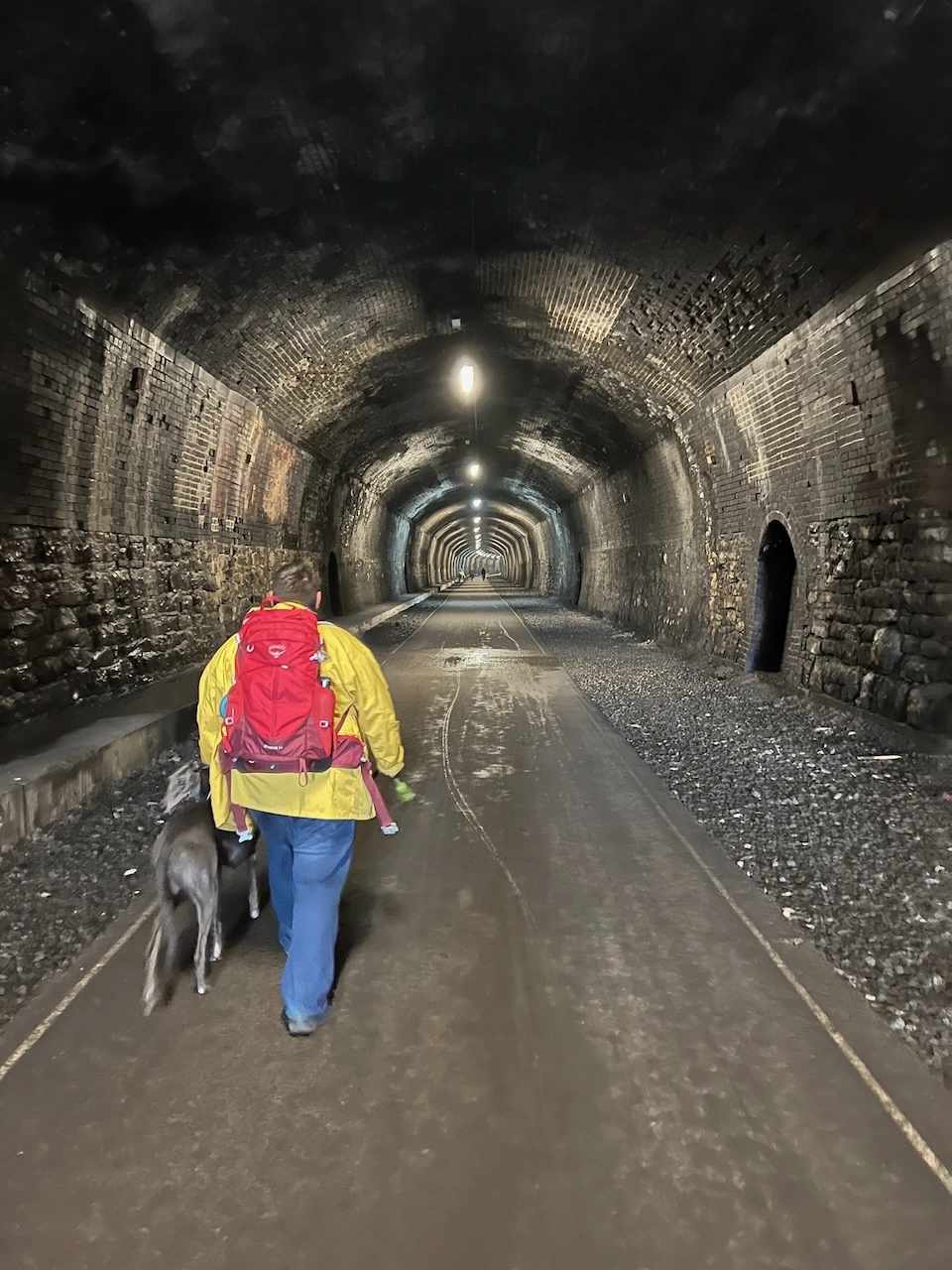 - Pass over impressive Victorian viaducts and through several long, re-opened railway tunnels (lit).